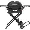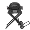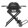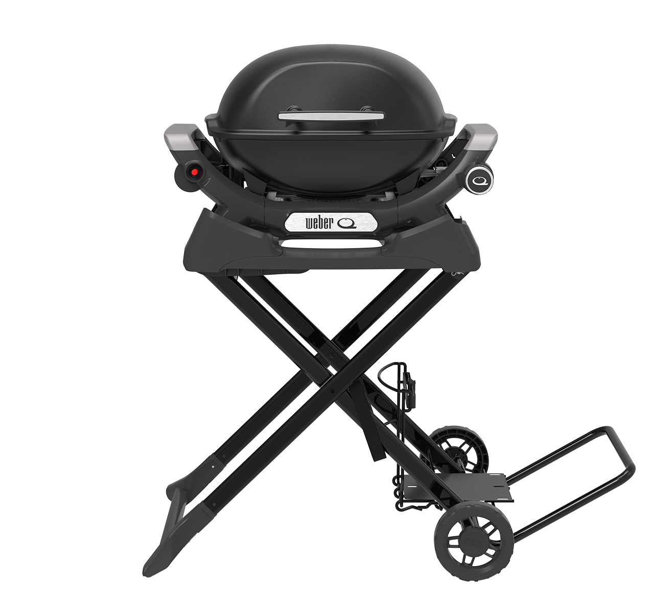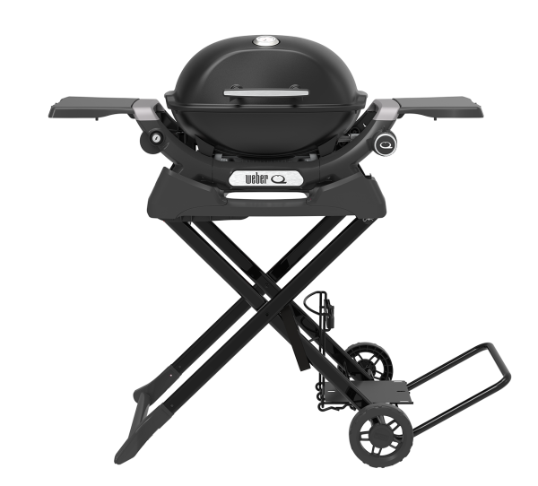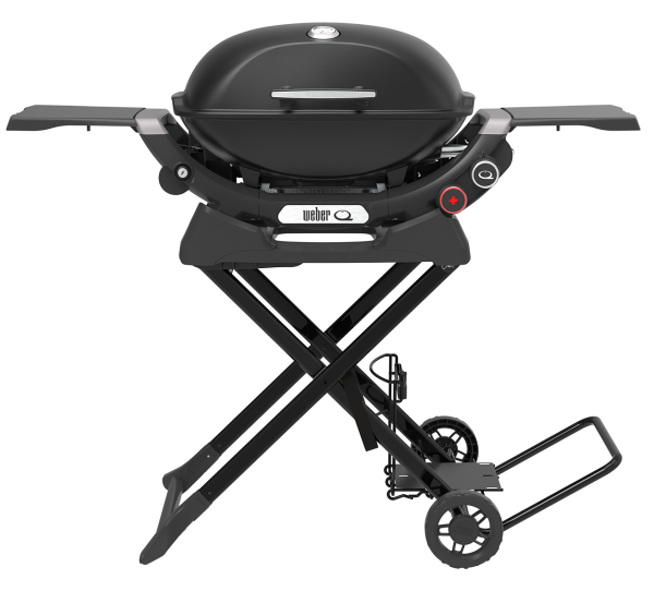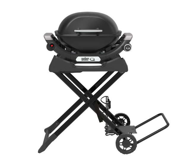 This light-weight, foldable and portable cart is the perfect travelling companion for your Baby Q or Q series barbecue. In the upright position, it keeps your barbecue at the perfect cooking height and has a dedicated gas bottle holder and handy hooks to hang your barbecue tools from. The barbecue locks safely into the cart, allowing you to fold it down and easily manoeuvre the entire assembly using the large wheels and pull handle.