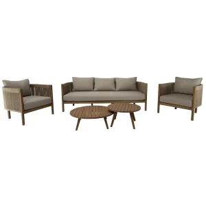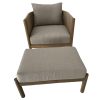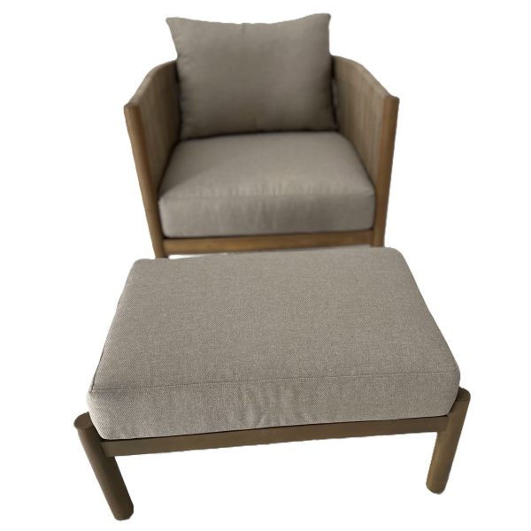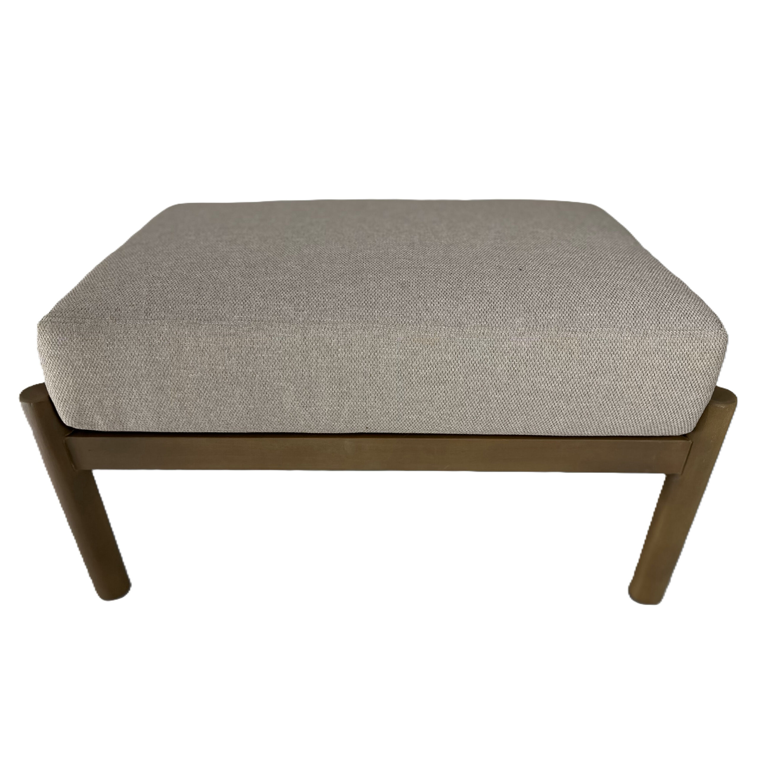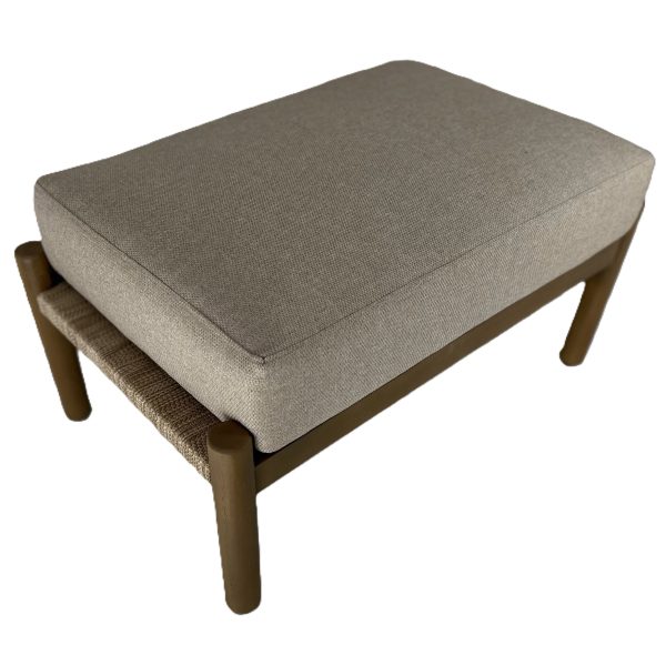 The footstool is made with a solid eucalyptus FSC timber frame and leg set in a teak look finish.