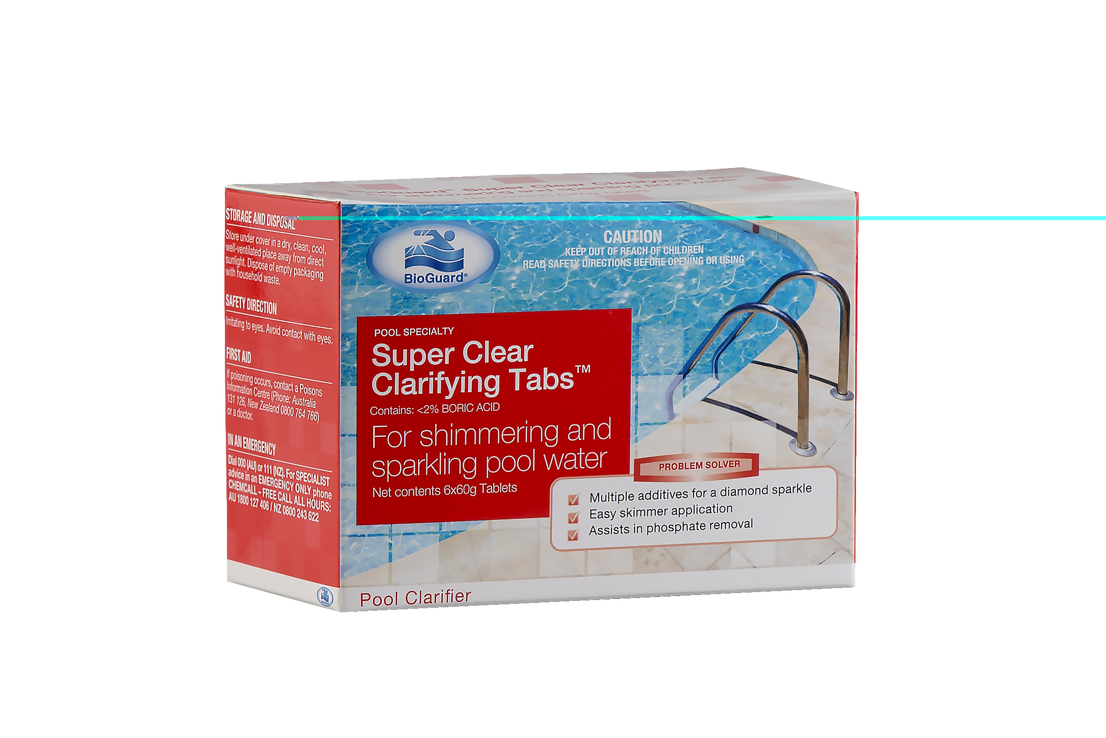 BioGuard Super Clear Clarifying Tabs are 60g tablets containing the proprietary clarifier Poly A 2000 which aids in the removal of both organic and inorganic wastes by gathering together particles that can cause dull and cloudy water.