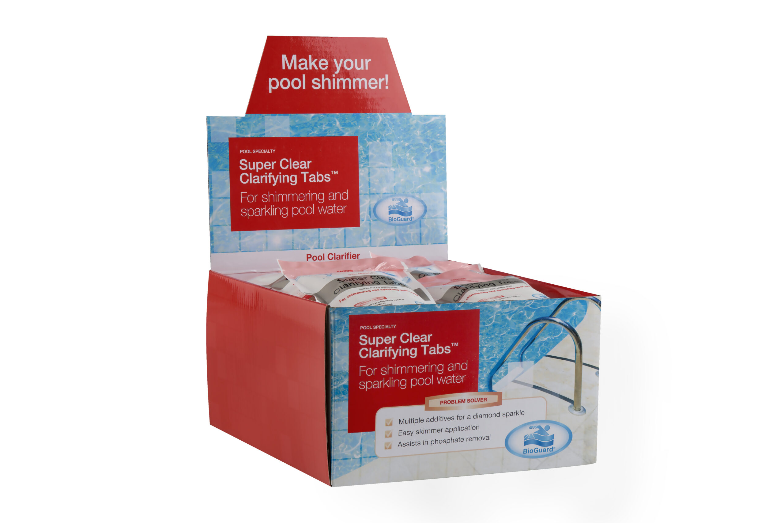 BioGuard Super Clear Clarifying Tabs are 60g tablets containing the proprietary clarifier Poly A 2000 which aids in the removal of both organic and inorganic wastes by gathering together particles that can cause dull and cloudy water.