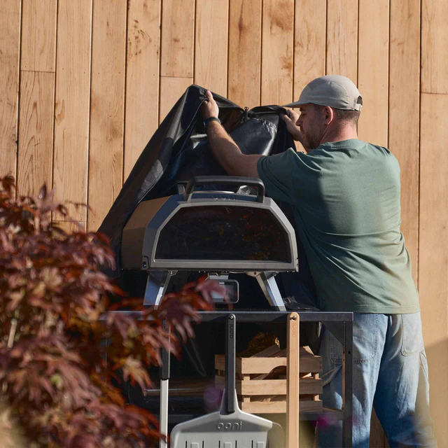 Wait for the oven to cool before using the cover. Please note that before using the Cover for Ooni Oven and Table, you must wait until your Ooni oven has cooled completely before removing the chimney (selected models only) and placing it under the oven for storage.