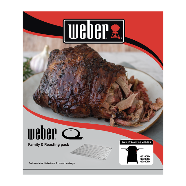 Roasting and baking on your Family Q barbecue has never been so easy. The roasting trivet and convection trays instantly transform your Family Q from direct grilling to indirect cooking your favourite roasts and baked foods. The design of the trivet and convection trays allow for heat to circulate around the food for perfectly even cooking. When roasting meats, the fats and drippings fall onto the tray, and create smoke and flavour, whilst the excess drippings are channelled away from the burners.