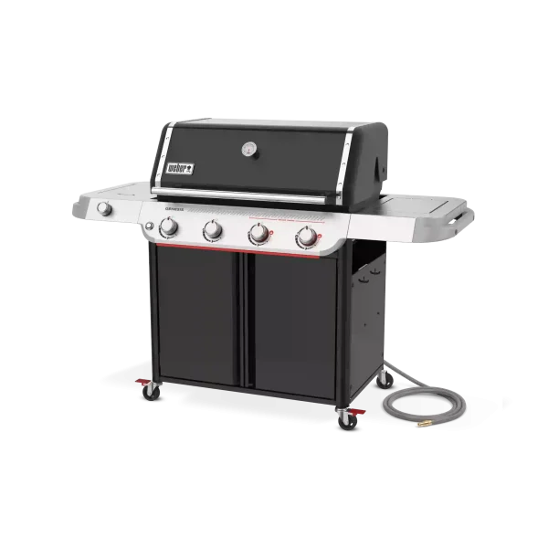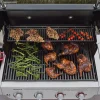 Porcelain-enamelled, cast-iron cooking grills for even heat distribution and superior heat retention.