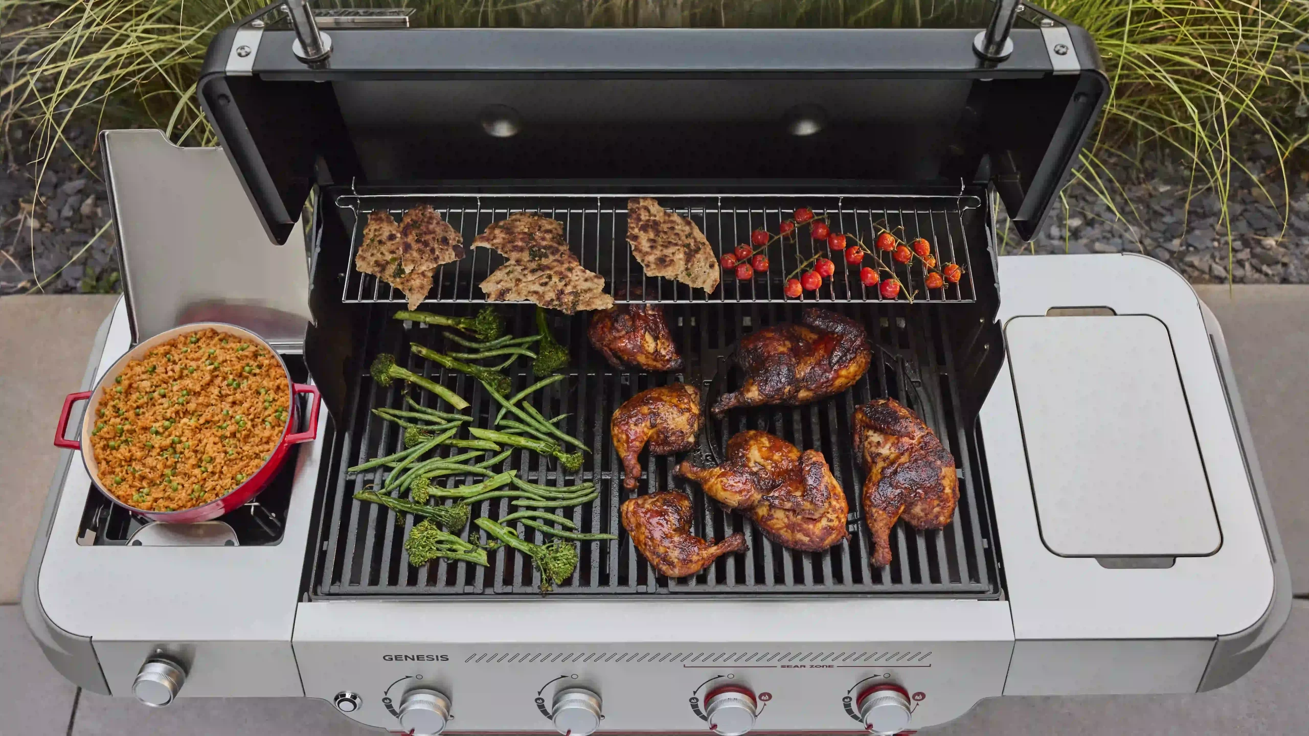 Includes porcelain-enamelled, cast-iron Weber Crafted® griddle to sizzle up smashed burgers and more.