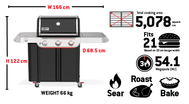 Includes porcelain-enamelled, cast-iron Weber Crafted® griddle to sizzle up smashed burgers and more.
