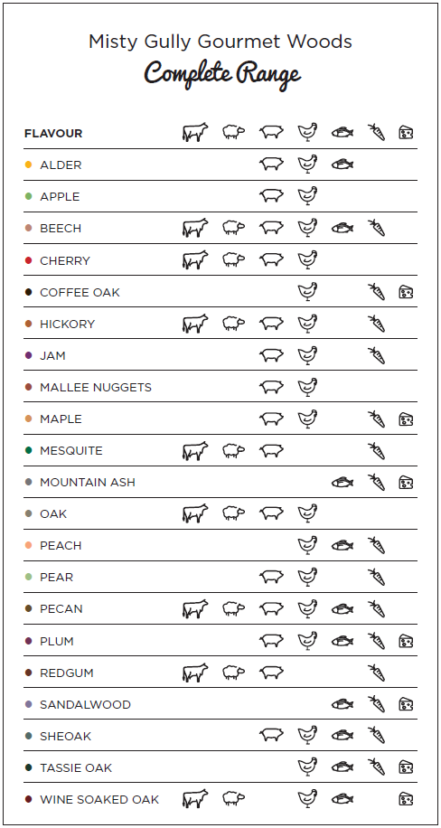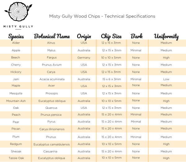 Australias premium quality woodchip in the widest variety of species! Sourced from only the finest suppliers in Australia and the USA, Misty Gully brings you premium quality smoking wood in Australias widest range of species.