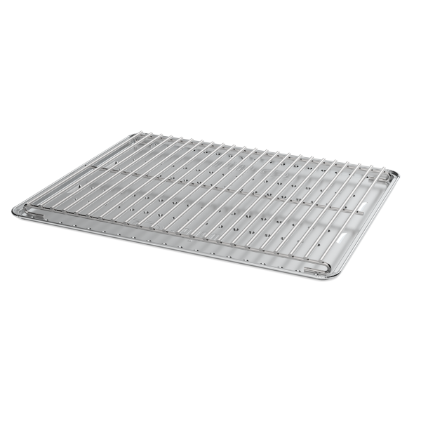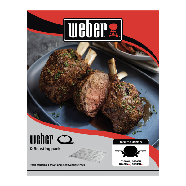 Roasting and baking on your Weber Q barbecue has never been so easy. The roasting trivet and convection trays instantly transform your Weber Q from direct grilling to indirect cooking your favourite roasts and baked foods. The design of the trivet and convection trays allow for heat to circulate around the food for perfectly even cooking. When roasting meats, the fats and drippings fall onto the tray, and create smoke and flavour, whilst the excess drippings are channelled away from the burners.