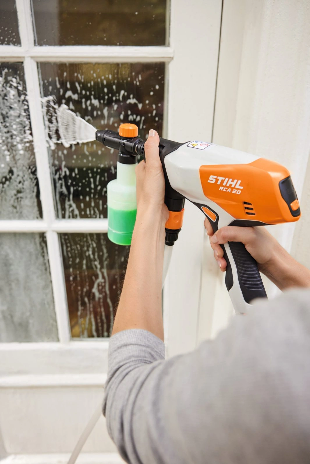 Thanks to the maximum pressure of 24 bar and the low weight of only 1.3 kg, you can use the RCA 20 to clean garden furniture, bicycles, grills or play equipment with ease. The 4-in-1 nozzle allows quick change between different applications.