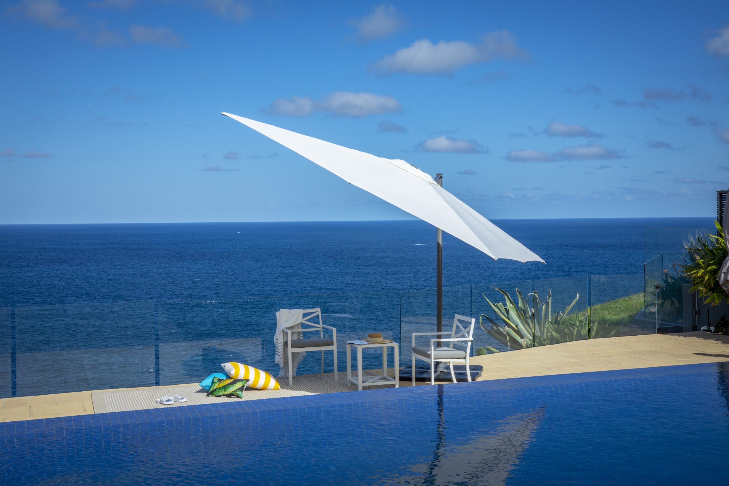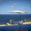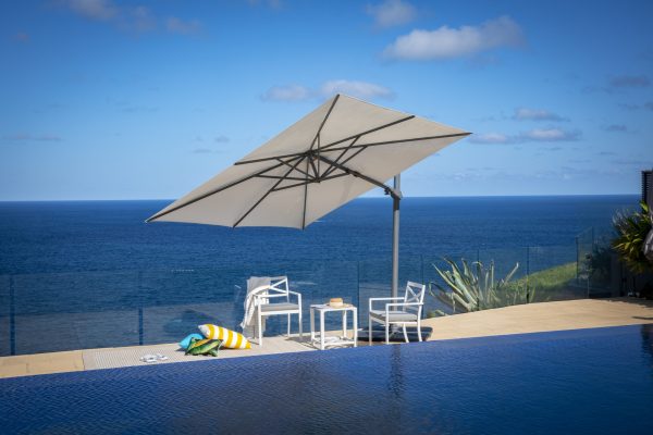 The Regis Umbrella has all other Shelta Cantilever attributed – winder handle opening and closing, 360 degree rotation around the mast (to give shade where needed), LED light mount.