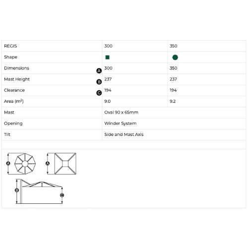 Regis is also available in a 350cm Octagonal umbrella.