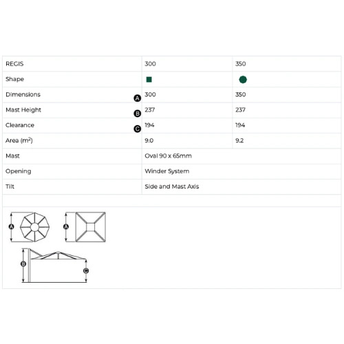 The Regis umbrella is also available in a 3m square umbrella. view here