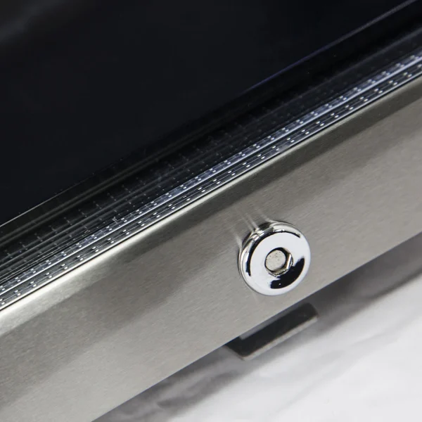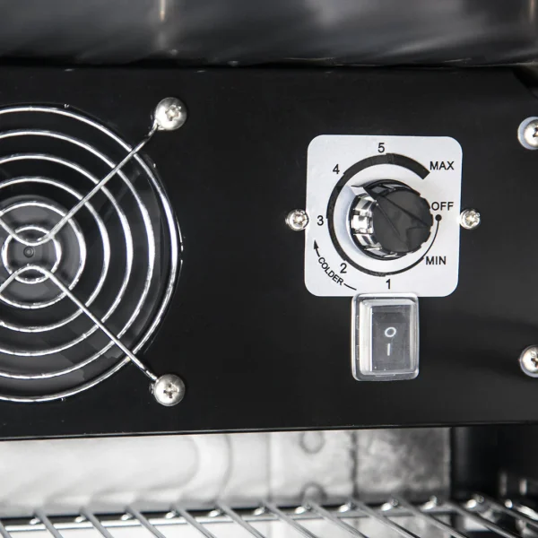 Unit has triple glazed LOW E s/steel door with lock and led strip lights. The shelving structure allows 5 x height of 375ml cans, so it can fit over 100 inside.