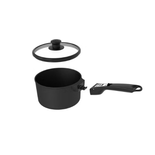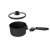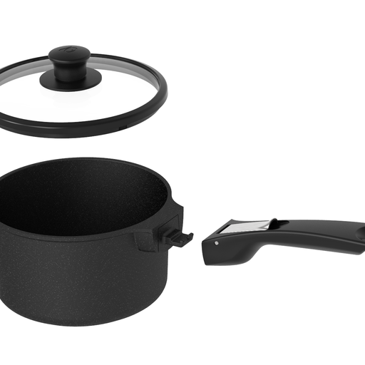 Saucepan: Cast Aluminium with ceramic outer coating and Weber Ti (Titanium) non-stick inner coating.