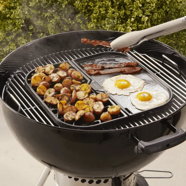There’s no need to choose between grilling or searing. You can do both with one piece of durable cookware. This cast iron combo saves time at the grill by preparing more food at once. Grill crispy bacon while making evenly cooked pancakes or sear steak while sauting vegetables for fajitas. The porcelain enamel finish makes it easy to clean and the stackable pieces save space when stored.