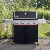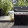 Porcelain-enamelled, cast-iron cooking grills for even heat distribution and superior heat retention.