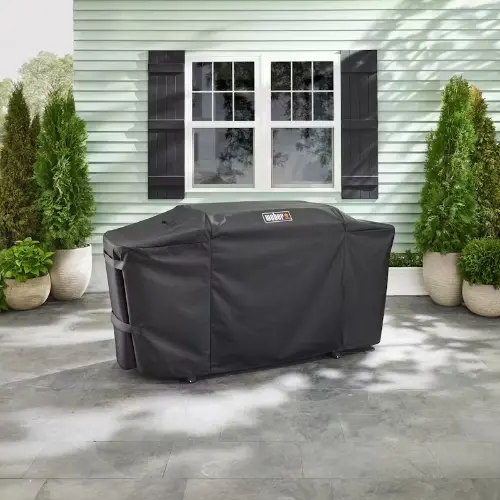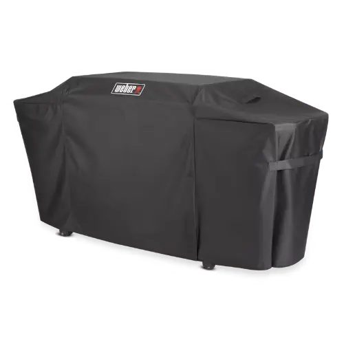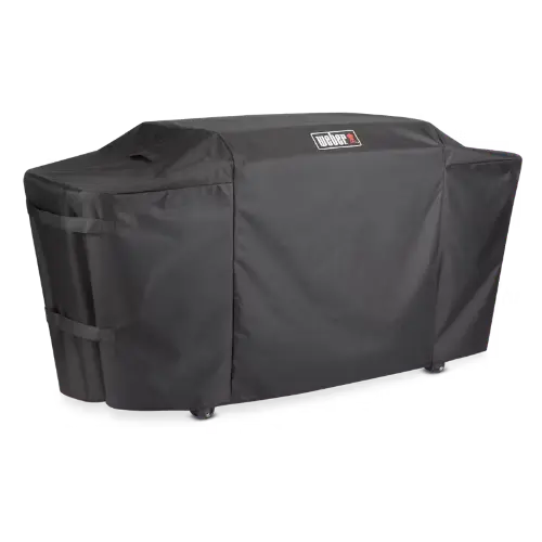 Keep your gas griddle BBQ looking great. This durable Premium Griddle Cover means you don’t have to fear the elements. It’s weather-resistant, covers with the side table up or folded down, and comes with fastening straps to help keep it secure even in the harshest conditions.