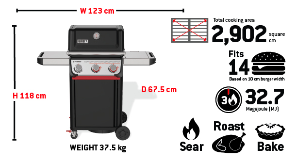 Cast-aluminium cookbox stands up to the elements and prevents rusting & incorperating an easy access pull out grease tray for quick & easy disposal.