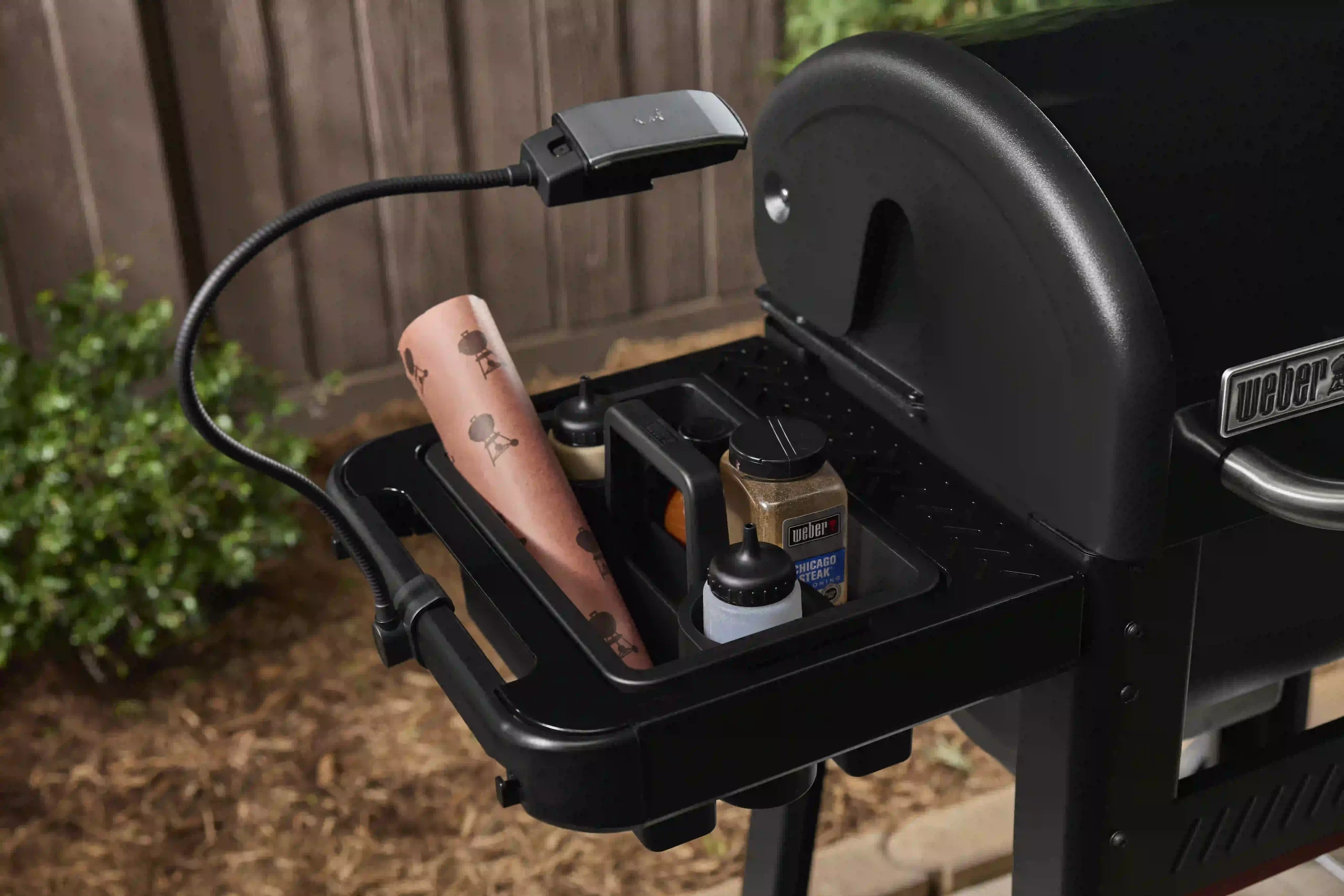 Barbecue into the night with Weber Works™ Flexible Lighting. This handy LED light is designed for Weber Works™ compatible barbecues, griddles, smokers, stands, and tables to illuminate your entire cook and prep surface. Adjust the flexible stem to direct the beam exactly where you need it, or pop the light off the stem and use it as torch perfect for lighting your way through the yard.