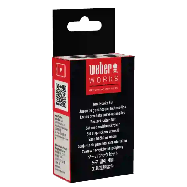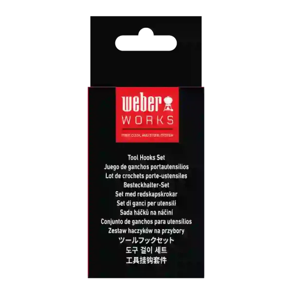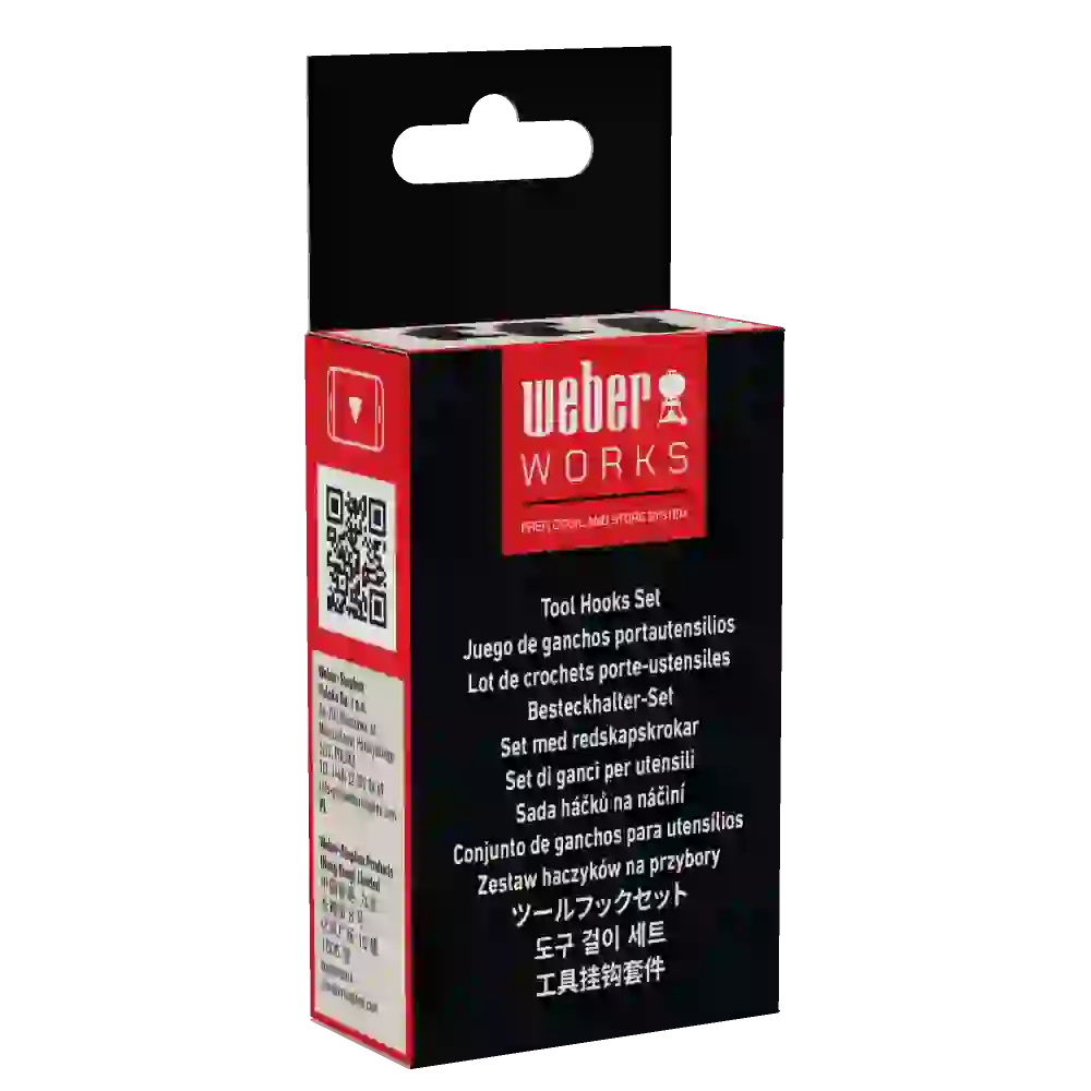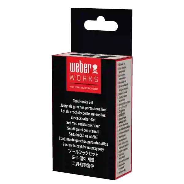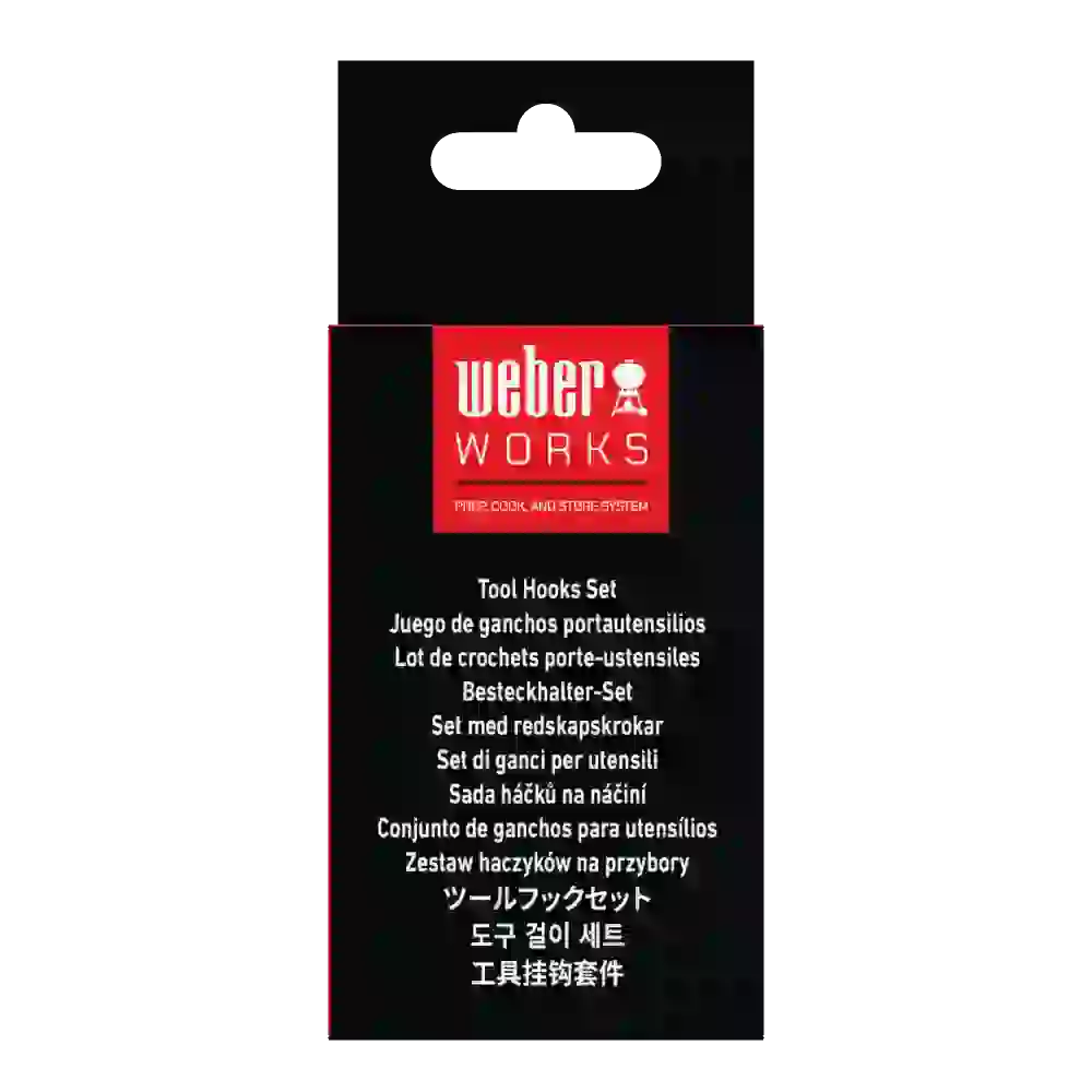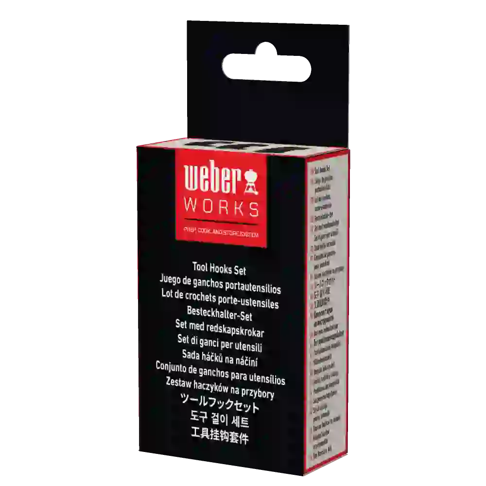 Add extra handy storage for spatulas, tongs, and scrapers with the Weber Works™ Tool Hooks Set. These hooks are designed for Weber Works™ compatible barbecues, griddles, smokers, stands, and tables, and can be repositioned quickly and easily. Keep your essential tools within reach while freeing up valuable space on your side tables.