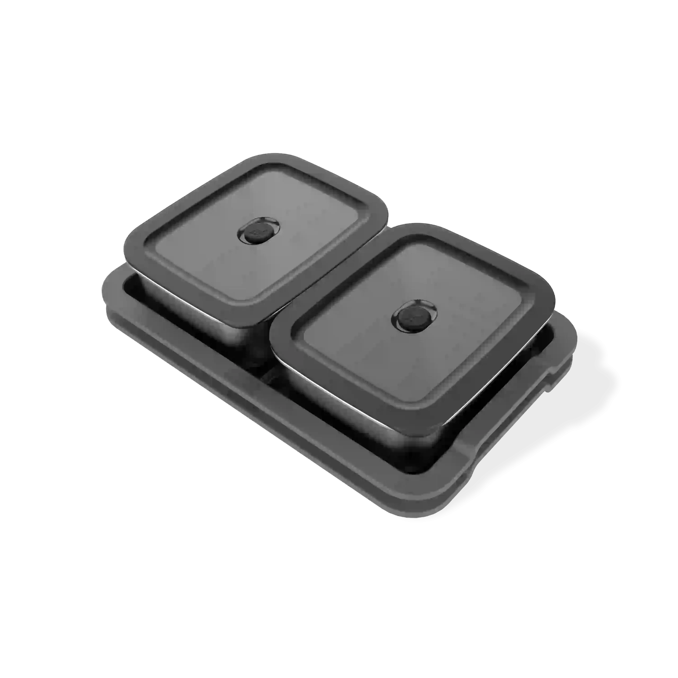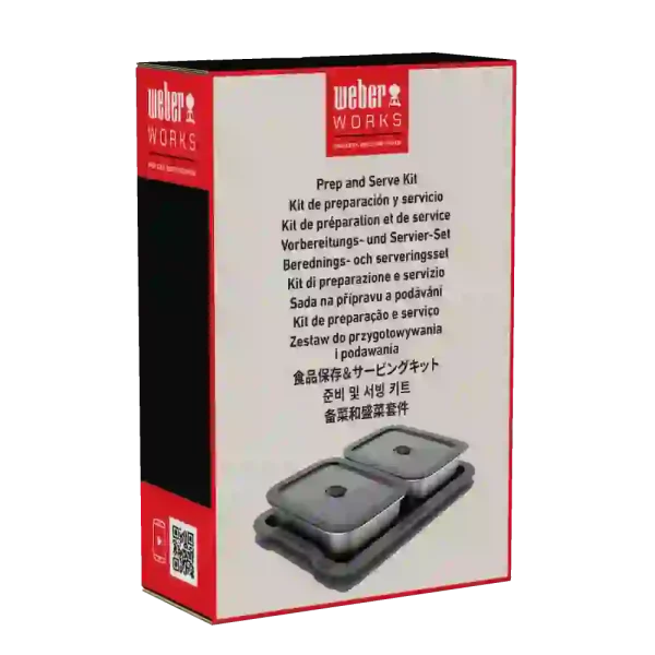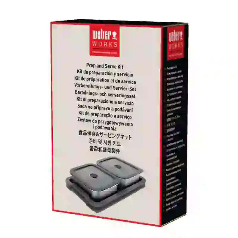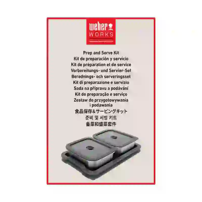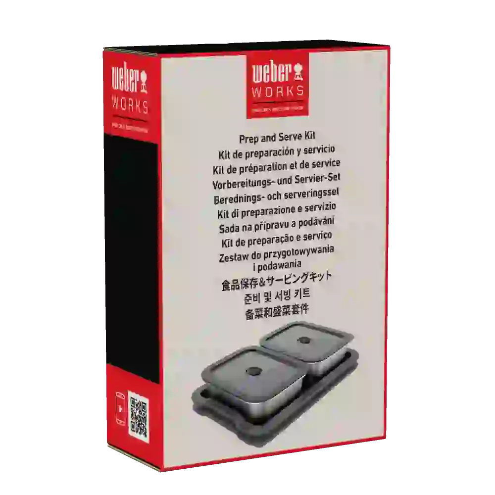 Go from the kitchen to the barbecue to the table with ease with the Weber Works™ Prep and Serve Kit. This clever set includes two stainless steel food prep containers with airtight lids and two divided serving trays that nest together and fit seamlessley into Weber Works™ compatible barbecues, griddles, smokers, stands, and tables. Marinate and store meats or prepped ingredients in the containers, transport them securely to the barbecue for cooking, serve finished food on the trays, then pop them all in the dishwasher for easy cleanup.