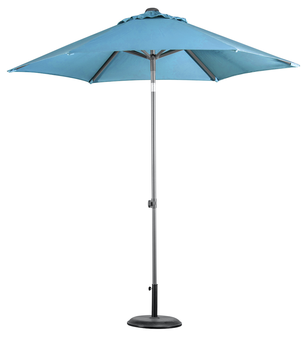 A convenient, compact and adaptable small aluminium umbrella. Infinitely height adjustable. Push-up opening. Available in Turquoise polyester canopies with a charcoal frame.