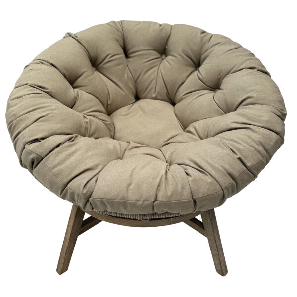 The Moon relaxing lounge chair comes with a spacious, thick, deep padded one piece, Light Brown, 20cm thick, water repellant, 250g polyester fabric cushion. (incorporating a zip off cover)